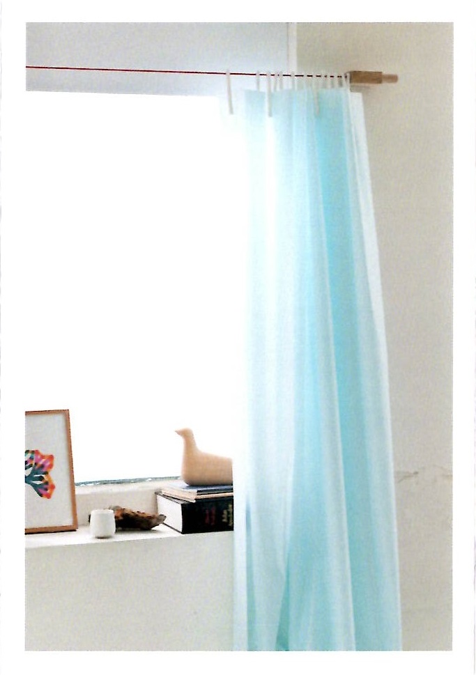 上の画像は木製ブラケット、ペグ、吊り下げコードの部品です。「READY MADE CURTAIN」はカーテンファブリックの最小限のシンプルさで構成されている自分で作るカーテンです。