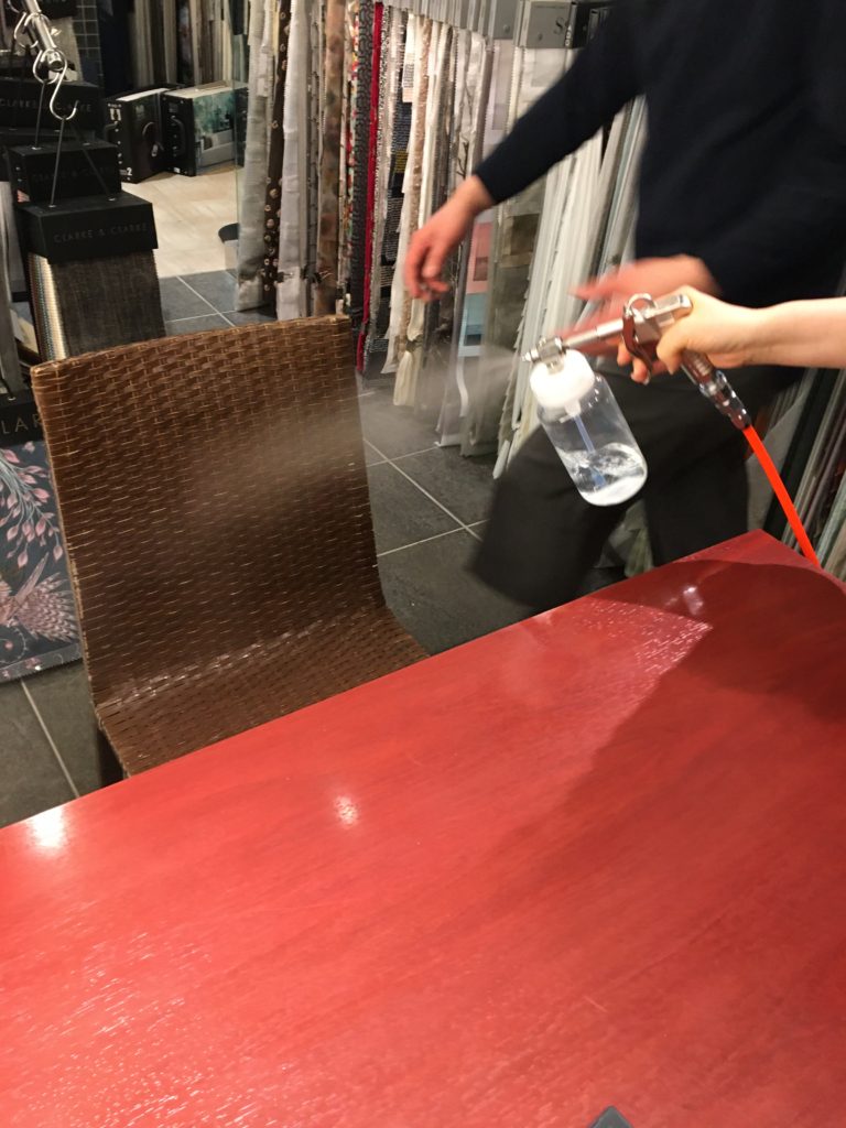 まずはECO SHOTでグランデコールショールームを店内丸ごとスプレーしました♪